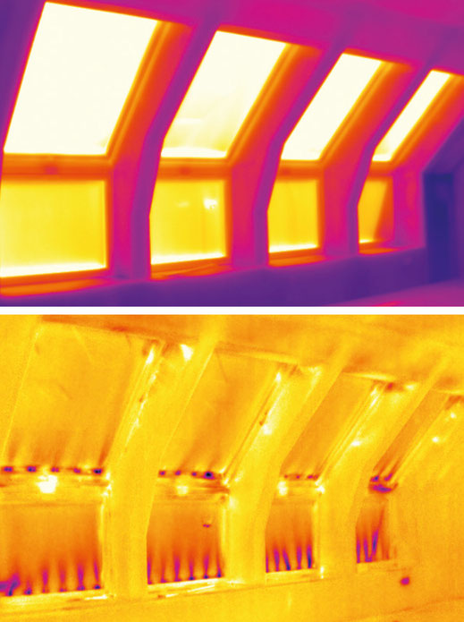 Thermografie wird zur Ermittlung von Wärmebrücken und Leckagen an der Gebäudehülle eingesetzt. Es wird genutzt, um die Ursachen von Bauschäden zu lokalisieren. Die Thermografie-Kamera macht mit Hilfe von Infrarotstrahlung Temperaturunterschiede an der Außenhülle sichtbar. Bei der Durchführung der Thermografie muss die Außentemperatur mindestens 15-20 Grad niedriger als die Raumtemperatur liegen. Somit kommt ein Wärmestrom von innen nach außen zu Stande, der dann messbar ist. Um Verfälschungen durch die Sonne zu verringern, sollten die Aufnahmen in den frühen Morgen- oder späten Nachtstunden gemacht werden. Ich setze meine Kamera auch bei Bower Door und Schimmelgutachten ein.